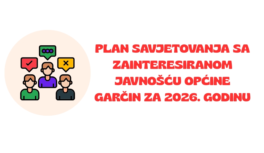 Općinski načelnik Općine Garčin donio je Plan savjetovanja sa zainteresiranom javnošću Općine Garčin za 2026. godinu.